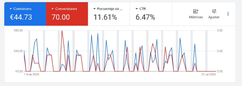 • Conversiones: 38–50 / mes