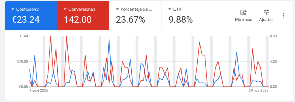A partir de semanas 6–12 ya teníamos datos fiables para tomar decisiones sobre anuncios y landings.