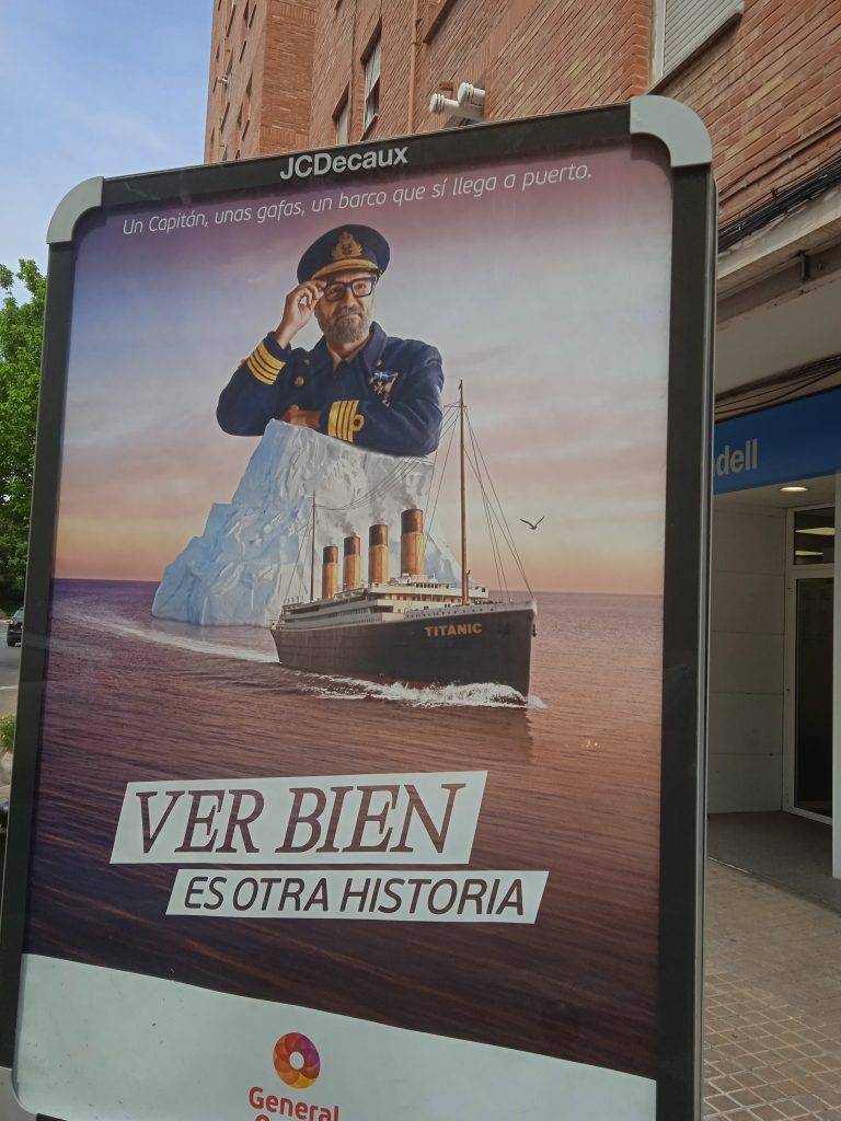 Era uno de General Optica. Sale el capitán del Titanic con gafas y el texto dice: